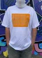 Genesis Block design Tshirt with bitcoin orange background.