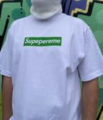 "Supepereme" design Tshirt with classic green box-logo on white Tee.